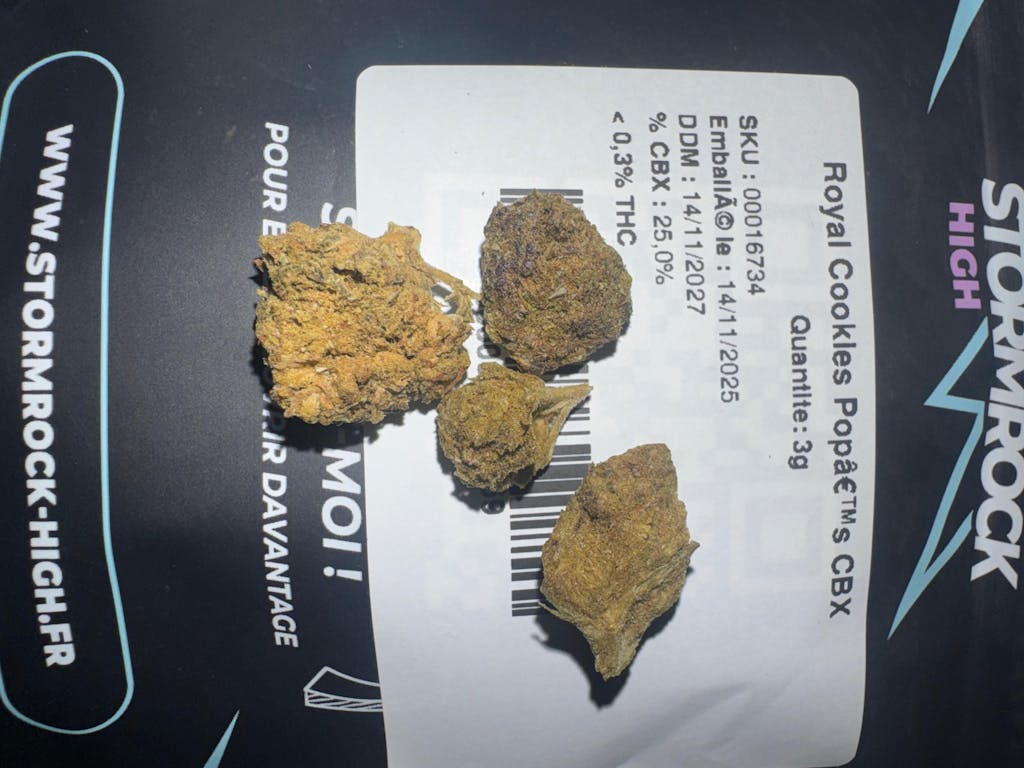 La Royal Cookies Pop's CBX 26% est l'héritière directe de la légendaire Girl Scout Cookies. Cette lignée royale offre une signature terpénique onctueuse et gourmande : de véritables effluves de biscuit chaud sortant du four, nappés d'une crème vanillée sucrée qui envahit les sens.